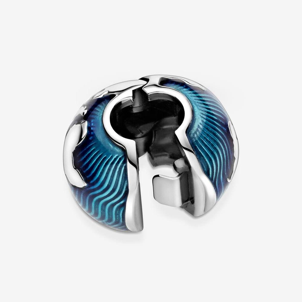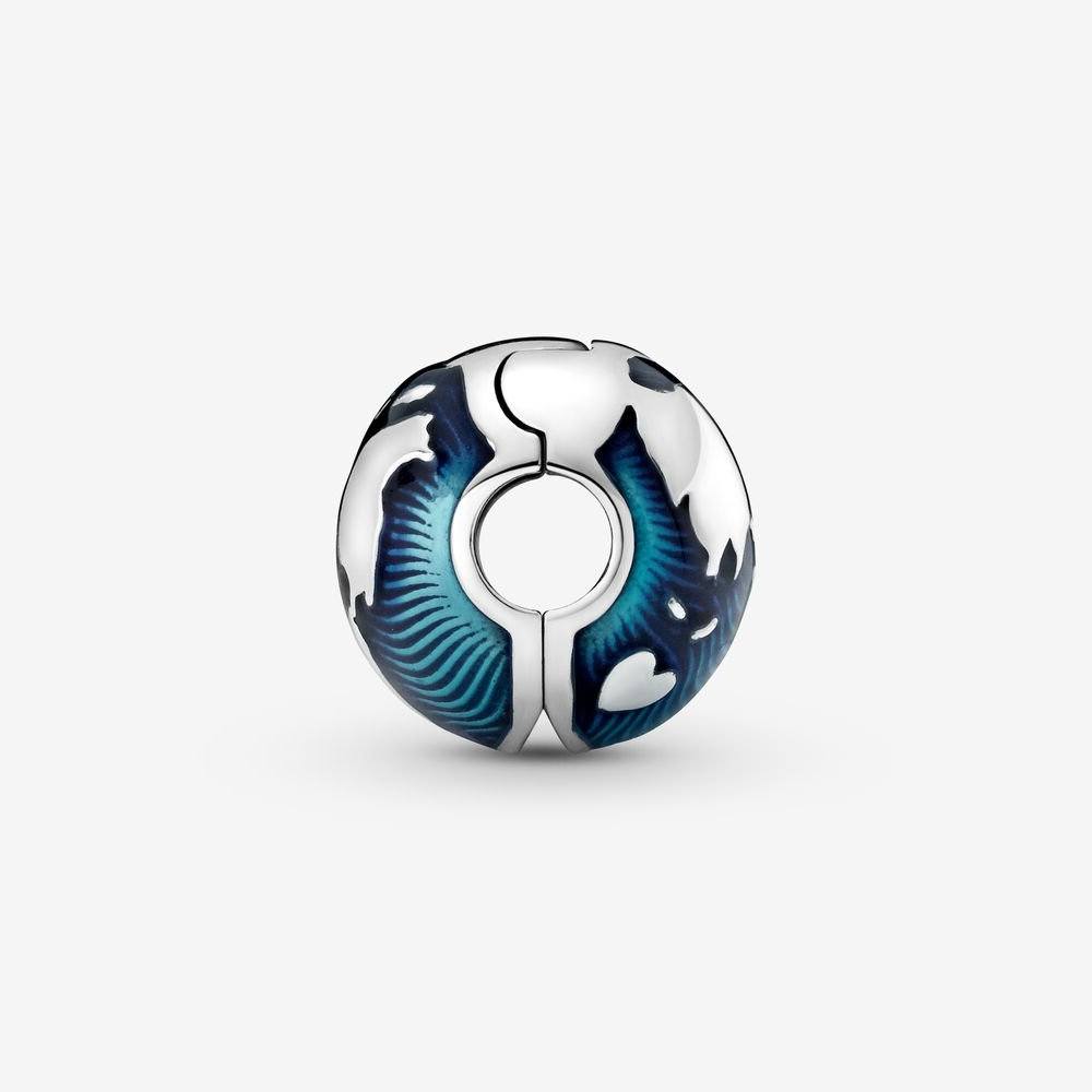 Zeige Deine Verbundenheit zu unserem Planeten mit dem Blauer Globus Clip. Die Kontinente aus poliertem Sterling-Silber sind von Wellen aus blauen Emaille umgeben. Der Kontinent Australien wird als Herzform dargestellt. Das Clip-Charm hat keinen Silikonkern und muss auf festen Gewinden, um nicht zu verrutschen.