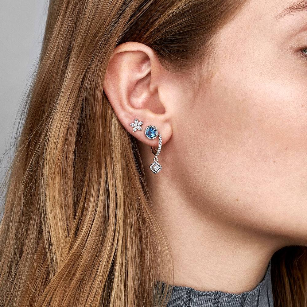 Mache Dich bereit für Hauspartys mit diesen funkelnden Schneeflocken-Ohrringen. Diese handveredelten Ohrstecker aus Sterling-Silber sind vom Zauber des Winters inspiriert. Jeder Ohrring ist mit sternfürmigen Schneeflockensteinen mit Mikroperlen in der Mitte besetzt. Kombiniere diese Schneeflocken-Ohrringe mit einem Pandora Moments-Armband, das mit Deinen liebsten Winter-Charms verziert ist, um zu zeigen, wie sehr Du diese Jahreszeit liebst.