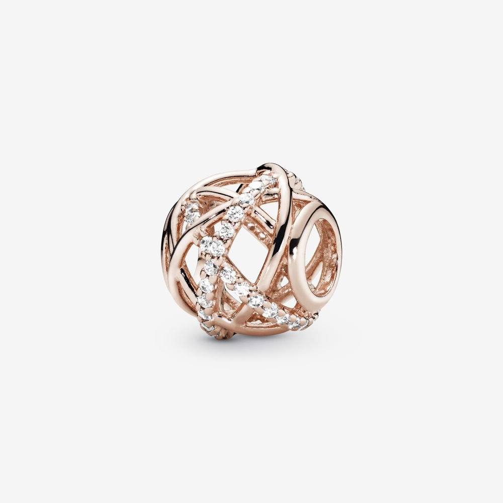 Gebe Dich der Zauber funkelnder und gl?nzender Linien-Charms hin. Das 14 Karat ros?vegoldete abstrakte Design verf?gt über polierte Metallstr?ngen und funkelnde Cubic Zirkonia-Steine für einen auff?lligen Effekt. Kombiniere sie mit passenden Charms aus anderen Metallen für einen mehrdimensionalen Look.