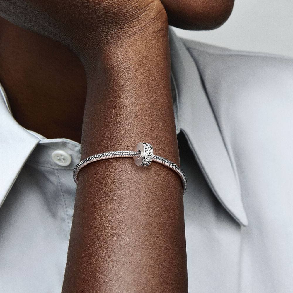 Dieser funkelnde Clip mit Cubic Zirkonia verleiht Deinem Look einen dezenten Glanz und sch?tzt Deine Pandora-Armb?nder. Mit stilvollen Pandora-Clips kannst Du Sie verschiedene Teile Deines Armbands gestalten. Der Clip hat einen versteckten Silikonkern, damit die Charms nicht verrutschen. Der Pavé-Look kann mit Pandora-Armreifen, Halsketten und den meisten Armb?ndern kombiniert werden. Das Clip-Charm hat einen Silikonkern und passt daher nicht auf die festen Gewinde einiger Armb?nder. Du kannst es überall am Armband tragen.