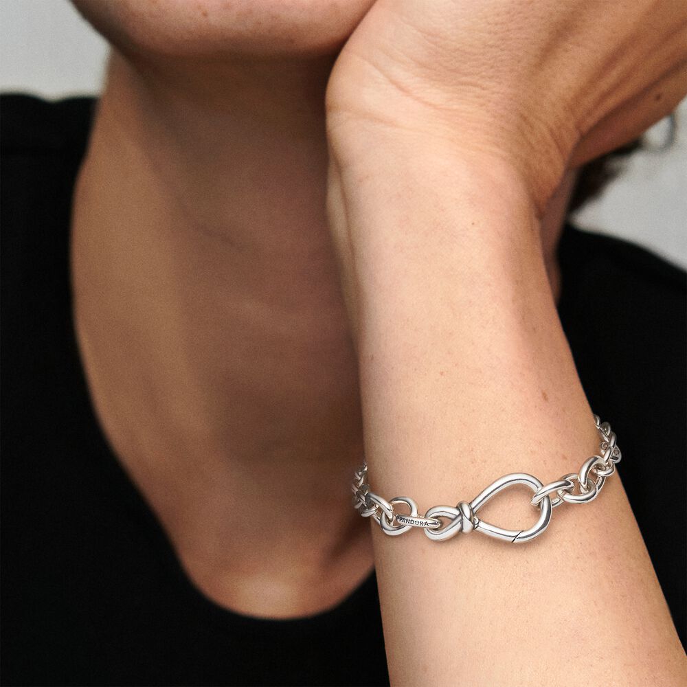 Die Liebe wird mit Pandoras einzigartigem Unendlichkeitssymbol doppelt so gro?. Der ikonische Knoten wickelt sich um die Mitte und symbolisiert die St?rke der Verbindung. Als perfektes Symbol für eine unzerbrechliche Bindung ist dieses Infinity-Knoten-Armband aus Sterling-Silber eine klassische Erg?nzung Deiner Armbandkollektion. Der Infinity-Verschluss kann ge?ffnet und mit bis zu zwei Charms-Anh?ngern gestylt werden.