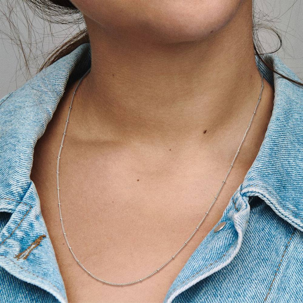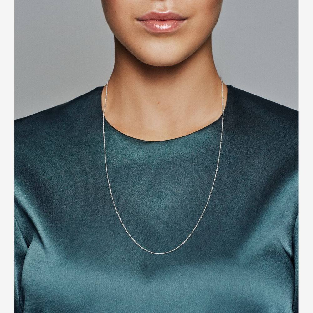 Unsere Perlenketten sind schlicht und doch elegant und bringen jeden Charm und Anh?nger, der Deine Geschichte erz?hlt, perfekt zur Geltung. Die zarte Halskette ist aus Sterling-Silber handveredelt und in drei Stufen verstellbar, für die perfekte L?nge für jedes Outfit. Kombiniere sie mit anderen Halsketten für Deinen eigenen Look oder verschenke sie an die modebewusste Frau in Deinem Leben.