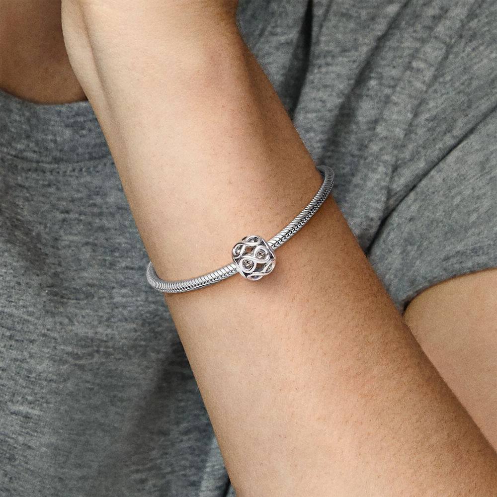 Folge Deinem Look bis in die Unendlichkeit und darüber hinaus mit diesem eleganten Infinity-Charm aus Sterling-Silber. Das handveredelte Charm ist als Unendlichkeitssymbol gestaltet und verleiht Deinem Look eine tiefere Bedeutung. Ein Charm, den Du sicherlich für immer sch?tzen wirst. Das Design wurde als Erg?nzung zu unseren Armb?ndern und Armreifen entworfen und ist die perfekte Erg?nzung zu Deiner Sammlung.