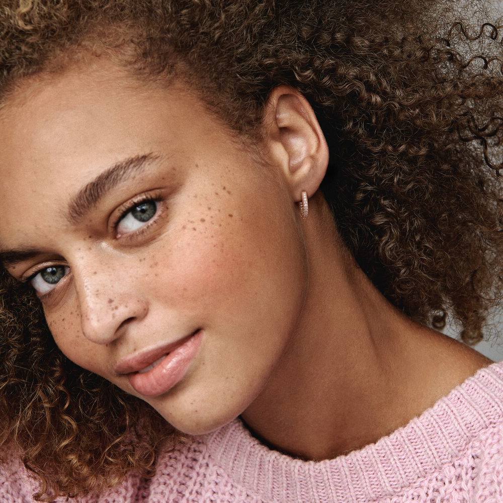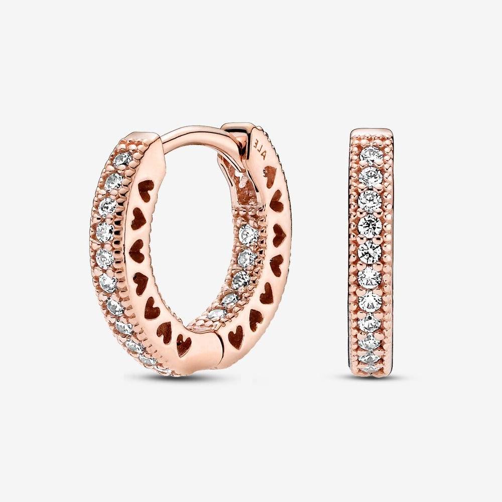 Lass Dich von diesen Pavé-Herz-Ohrring hinrei?en. Das Design dieser handveredelten 14 Karat ros?vergoldeten Ohrringe ist von der Pandora Signature-Kollektion inspiriert. Die Innen- und Au?enseite beider Ohrringe sind mit funkelnden Cubic Zirkonia besetzt. Als zus?tzliches Detail sind an der Seite der Ohrringe ausgestanzte Herzen. Kombiniere diese Kreolen mit Deinem Pandora Signature-Armband im gleichen Farbton für einen klassischen Look.