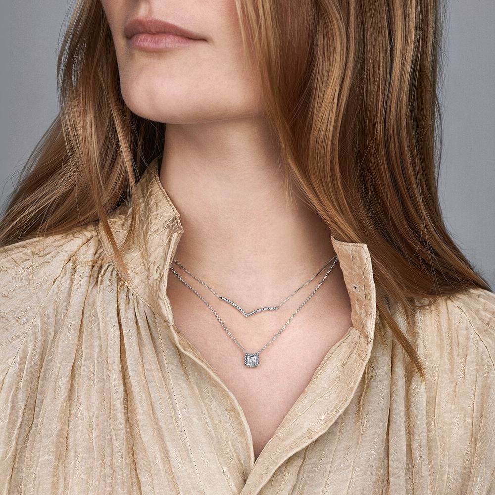 Eleganz kommt nie aus der Mode und diese zeitlose klassische Halskette aus Sterling-Silber wird bald zu einem festen Bestandteil Deiner Schmuckkollektion. Das Collier besteht aus einem quadratischen Cubic Zirkonia, der einen funkelnden Effekt erzeugt. Die Kette selbst ist für einen perfekt abgestimmten Look auf drei L?ngen verstellbar. Trage sie alleine für einen funkelnden Akzent in Deiner Abendgarderobe oder Deinem Alltagslook.