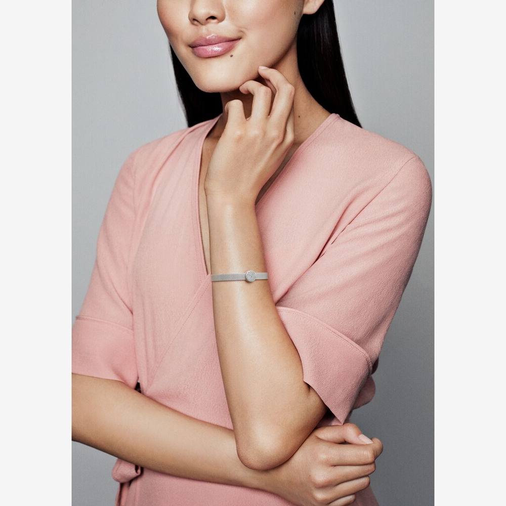 Erz?hle mit Pandora Reflexions Deine eigene Style-Story. Unsere Kollektion aus Mesh- und Schlangen-Gliederarmb?ndern und passenden Clip-Charms spiegeln Deinen Style wieder. Dieser Charm aus Sterling-Silber verleiht jedem Armband mit dem schimmernden Cubic Zirkonia-Reihen einen luxuri?sen Look. Der Silikonkern ermöglicht es Dir, den Charm in der perfekten Position an Deinem Armband zu tragen.