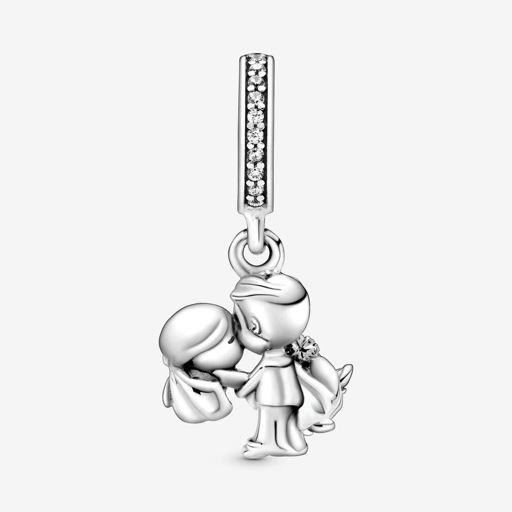 Mit diesem silbernen Charm-Anh?nger bleibt Dein besonderer Hochzeitsmoment für immer. Bewahre die Romantik des Moments, in dem Ihr „Ja“ sagt, mit diesem emotionalen Charm, der ein frisch verheiratetes Paar zeigt, das sich k?sst. Der Br?utigam umarmt die Braut sanft, w?hrend sie einen Blumenstrau? h?lt. Der Ring ist mit transparenten Cubic-Zirkonia verziert. Mach es zu einem zentralen Teil Deiner Sammlung oder verschenke es einer Braut, die Dir sehr bedeutet.